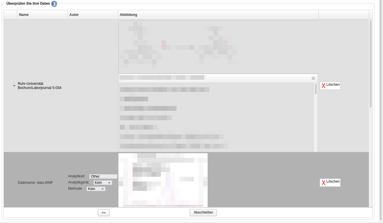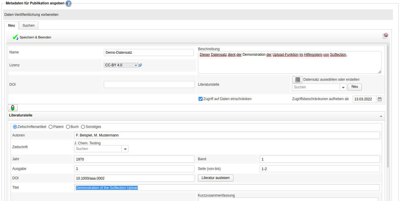 Abschließend können Sie Ihre Angaben prüfen. Nach Klick auf "Abschließen" werden die Daten bei Sciflection veröffentlicht.