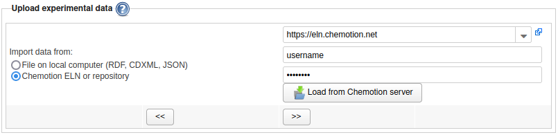 Wenn Daten von einem Chemotion ELN hochgeladen werden sollten, geben Sie hier die Zugangsdaten eines Benutzerkontos an, welches Lesezugriff auf die entsprechenden Einträge besitzt.