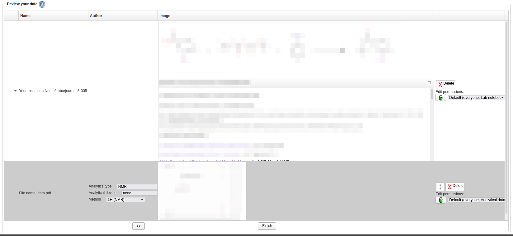 Finally, you can review your data. By clicking on "Finish", the data will be uploaded and published on Sciflection.