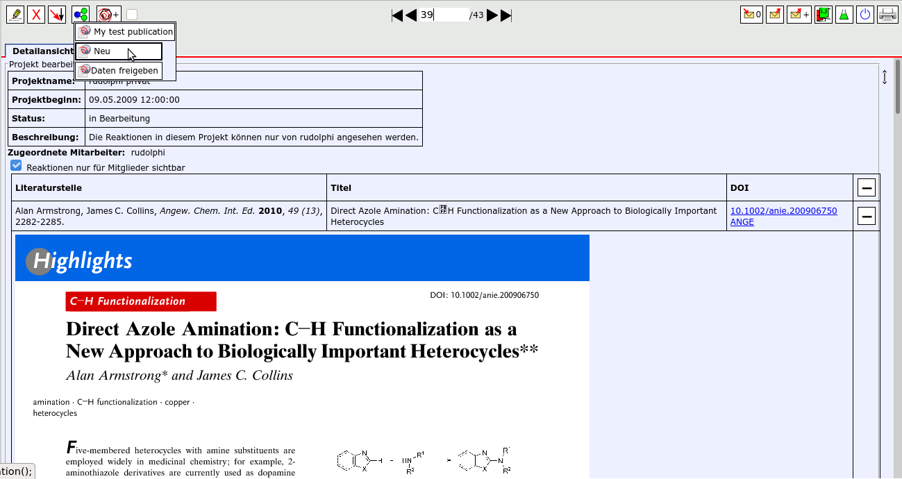 Öffnen Sie zuerst die Daten, die Sie veröffentlichen möchten. Dies können ein oder mehrere Projekte, Experimente oder analytische
