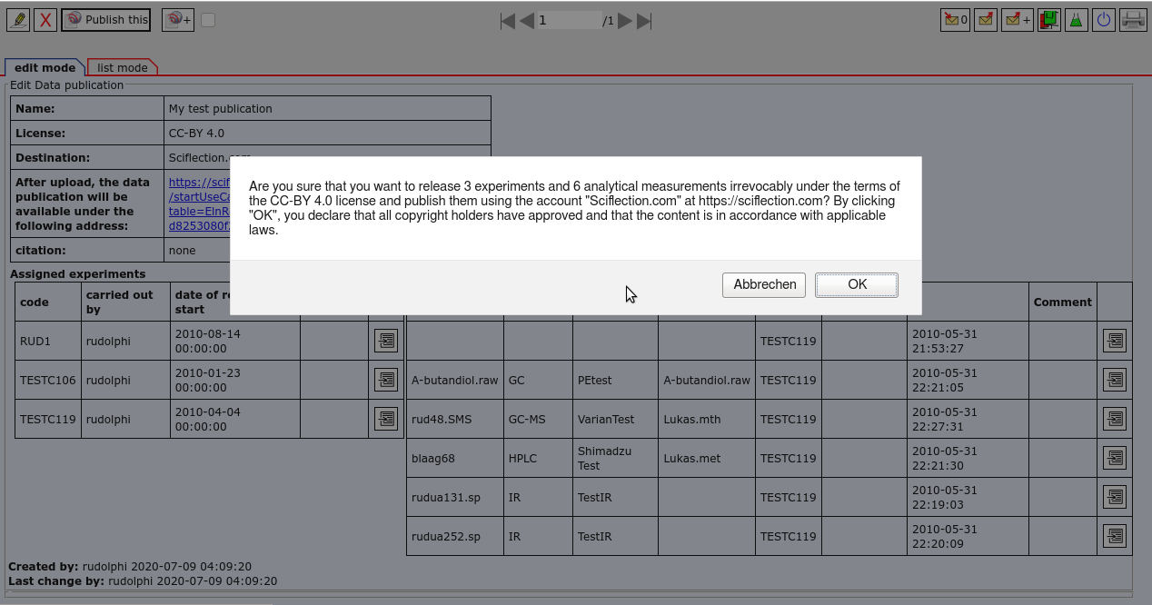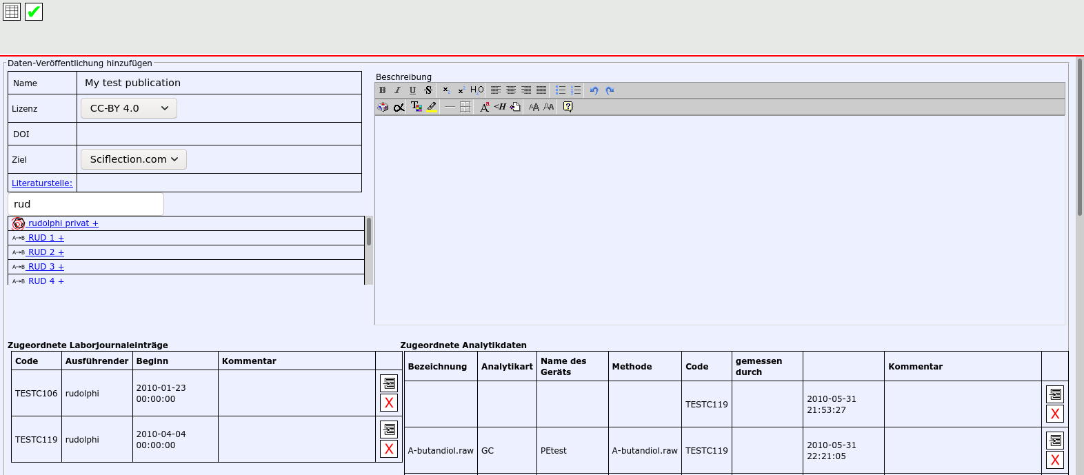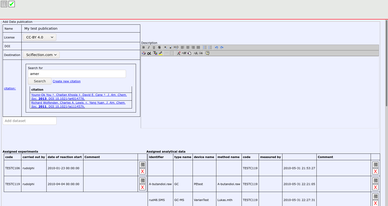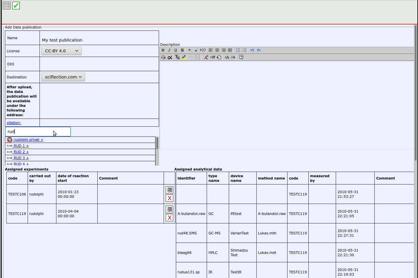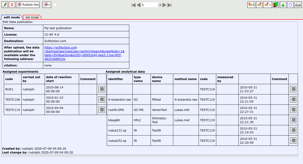 Data from open enventory can be published at Sciflection with just a few clicks.