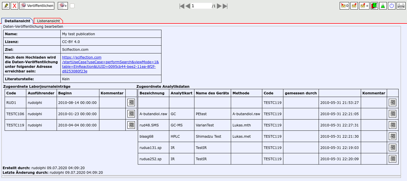 "Daten-Veröffentlichung erneut hochladen" auf Sciflection aktualisiert werden.